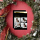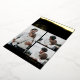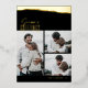 A simple, yet elegant Christmas card adorned with a bold, foil-stamped brushstroke design, and a coordinating script font greeting. The card has space for 3 photos to create a collage of beloved family photos. The customer's name appears at the bottom of the card, and is stamped in foil as well. The back of the card has space for a longer holiday message for loved ones.