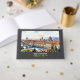 A beautiful watercolor painting of the city skyline of Florence in Italy appears on the front of this wedding guest book that has real foil templates set against a dark grey background. The foil may be changed from gold to either silver or rose gold. Simply select the colour of your choice and make sure to edit the templates to reflect your custom wording. These are ideal for Italian destination weddings.