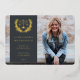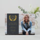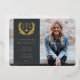 A formal but modern graduation photo announcement to celebrate those obtaining a Juris Doctor degree. The front of the announcement features a full-bleed photo with a colour overlay. The law scales symbol (with the 'JD' abbreviation), laurel wreath and template text can be printed in a foil colour of your choice. The back features a solid coloured background and template text for a longer message. If you would prefer to include no text on the back, just delete it before ordering. If you would prefer a photo on the back of the card, delete both the coloured background and the template text and upload your own photo. The design is available in different colours in my store, in versions without the 'JD' abbreviation so they can be adapted for any legal qualification and also in non-foil pressed versions. Other designs without a coloured overlay between the photo and text are also available (in foil and non-foil).