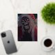 A cool, scary, creepy goth / punk / rock / grunge style skull head Santa Claus in anime cartoon style. He has a Santa hat and a classic red Santa jacket. He has a creepy, eerie red glow in his eyes. He is like a Krampus skull zombie Santa. Merry Christmas, Happy Holidays, and a Happy New Year!