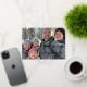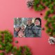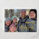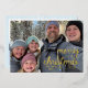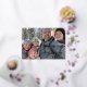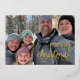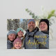 Foil lettering makes this Christmas card extra special. Full bleed photo on the front with "Merry Christmas" and family name and year. Two photos on the back and room for a personal message.