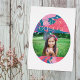 This festive holiday photo card features a large Easter egg design with a bold marble texture background. The "Happy Easter" greeting, as well as the name and date, are pressed in gold or silver foil for added elegance, and to contrast the colourful background. There is ample space for a customer photo within the egg design. The back of the card features a simple stripe pattern with the same marble texture.