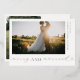 This chic holiday card is perfect for newly weds! It features a single photo accented in real foil by the phrase "Merry And Married" in an elegant script with a heart. The couple's names and wedding date sit to the right of the photo in this modern layout. The back has space for two additional photos and holiday message.