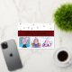 Replace the photos in this greeting card with your own favourite photos to make it your own! You can also change the front card greeting from “Merry Christmas” to “Happy Holidays”, “Season’s Greetings” or your own text. The back is also customisable and allows you to go with current “Wishing you all the best of the season” or update to your own text, as well as replace the back photo and the sign-off to that of your own. Highlighted on the front with a deep dark red band to make the real foil greeting stand out with a sprinkling of stars above it. Also find some printed stars on the back leading to the back photo.