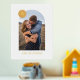 Showcase a cherished engagement, wedding, or family photo with this custom art print, which features a large, modern arch frame. In the top corner, there is a colourful circle with space for a monogram. Both the name and monogram are pressed in gold or silver foil for a more luxurious feel. This design is versatile enough to work with a variety of home decor styles.