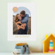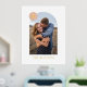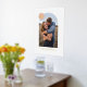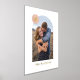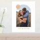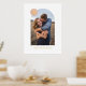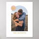 Showcase a cherished engagement, wedding, or family photo with this custom art print, which features a large, modern arch frame. In the top corner, there is a colourful circle with space for a monogram. Both the name and monogram are pressed in gold or silver foil for a more luxurious feel. This design is versatile enough to work with a variety of home decor styles.