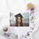 An elegant, gender neutral, photo announcement for any type of graduation. Featuring a full-bleed photo on the front, with overlaid text and the grads initials/monogram surrounded by a laurel wreath - all in a foil colour of your choice. The back features a second smaller photo and template text for a longer message. The design is available in different layouts/orientations in my store as well as in a non-foil version.