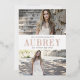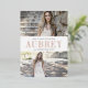 Chic and modern graduation announcement features two of your favourite horizontal/landscape orientated photos bisected by a white band bearing the graduate's name in rose gold foil, school and graduation year. Personalise the reverse side an additional photo and a personal message.