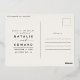 Navy blue + white elegant wedding save the date postcard. Modern, minimal script text design . Part of a collection.