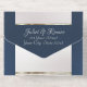 This elegant All In One wedding invitation features a silver pearl center on a blue background, an ornate frame and scroll heart with bride & groom's names in foil. Designed to coordinate with the "Ornate Frame & Hearts" Wedding Collection. To change details, click «Personalize». To move the text or change the text size, font, or color click «Click to customize further»