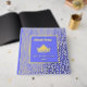 Book shown in Blue with Gold foil round crown, background, and front text, with black paper inside. Customise if you prefer by adding text, change background colours or upload your own images. Choose your foil choice of silver, gold or rose gold and customise from there!