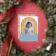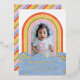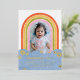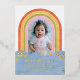 Invite friends of all ages to your child's birthday party with this retro-themed invitation. The design features a child's photo framed by a colourful rainbow. The event details are placed over a simple cloud design, and surrounded by a handful of daisies pressed in gold or silver foil. The back of the card features a diagonal pattern in coordinating colours. This invitation would also be perfect for a baby shower!