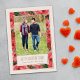 This chic Valentine's Day greeting card features a simple holiday greeting and space for a large customer photo, surrounded by a decorative, vintage rose frame. The design is pressed with gold or silver foil. The back side of the card features a stripe pattern filled with the same vintage rose illustrations.