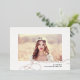 Simple and chic photo graduation announcement features your favourite senior portrait or graduation photo framed by a thick white border, with "graduate" overlaid at the lower right corner in elegant rose gold foil calligraphy script. Personalise with your name, class year and school beneath, and add additional details to the back.