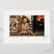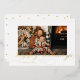 This elegant and simple holiday photo card features a real gold foil flourished script greeting reading "happy holidays" accenting a single customisable photo for a traditional, classic, and luxe feel. The back has a gold pom pom snowflake pattern for a unique accent.
