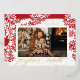 This elegant holiday photo card features a hand drawn border with red winter berries and foliage and a real gold foil flourished script greeting reading "Joyeux Noel" accenting a single customisable photo for a classic traditional holiday feel. The back adds unique interest with a matching red and white foliage pattern.