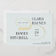 Announce your wedding date and location in chic classic style with these sleek save the date cards featuring your names in elegant black lettering, joined by an ornate swooping "and" in gold foil on a subtle pale dusty blue background. Your wedding date is elegantly worked into the design, with the location and additional information along the bottom.