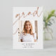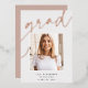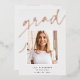 Customise this chic graduation announcement with a square photo overlaid on the word "GRAD" in rose gold foil script, along with your name, school, and graduation year. Add an additional photo and a personal message to the back.
