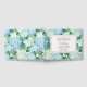 This guest book is shown in a layout for a wedding with a lovely hydrangea floral print and real silver foil accents.