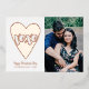 This chic Valentine's Day photo card features an elegant, foil heart design with type reversed out to let the white background shine through. The phrase "XOXO" is written in a bold, hand-drawn font. Underneath the heart design is a space for the customer to add a custom holiday greeting, or they can keep the message as is. The back of the card features a simple polka dot pattern.