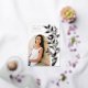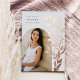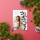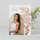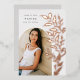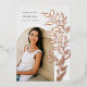 Chic and modern graduation announcement features a single vertical/portrait orientated photo in an arched layout, with climbing vines of rose gold foil botanical leaves along the right side. Personalise with your graduate's name, class year, and school and add a personal message to the back, along with an additional photo.
