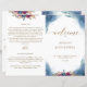 Elegant manually folded quinceañera program.  Once folded "front side" and inside's right side features gorgeous soft watercolor stains with dainty stars and floral details in blue, navy, turquoise, teal, purple, burgundy, fuchsia and golden tones.  Back and inside's left side in white background with floral detail on top.  Personalise the program adding any details or message you like, ours is simply an example. Ability to make text changes and adjustments by selecting customise further. Also available in English.  Also available in Spanish. NOTE: this program will arrive flat and requires folding down in the middle to assemble. The default paper thickness is recommended.