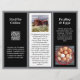 Three section flyer / business brochure with a chicken farm theme. (Easily change text and images for your needs.) Shades of grey, with white and black make up six sections, using both sides of the 8x11 inch paper. Use the templates to add lots of information about your business. Templates are provided for all titles and wording, with a whole about section with photo and text. Use the QR code image to add your own, along with a logo on the front page. Egg images can be left as part of the design, or replace them with images of your own - photos can be colour or black and white as you prefer. Fold either like an accordion, or double fold inward.