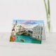 Escape to the magical world of Venice anytime you desire with this gold foil greeting card, featuring the famous view of the Rialto Bridge from a terrace overlooking the Grand Canal.