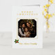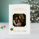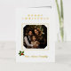 Holiday photo card is shown with a festive Christmas holly accent and with a greeting from your family.