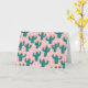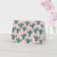 A cheerful and fun card with a playful pattern of blooming cacti on a soft pink background. The vibrant teal cacti and orange flowers, set against a scattering of white dots, make for a whimsical and happy design. This blank card is a perfect way to send a smile, a thank you, or well wishes for any occasion.