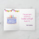 This card is great fun and good quality. I loved the humour inside and on the back. There is the opportunity to change the orientation of this card from landscape to portrait, which I did. It is relatively straightforward to amend the typeface to fit the new orientation. It was well packaged with no plastic. The printing on this card is excellent.