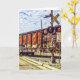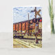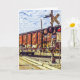 A freight train at a railroad crossing covers the front of this folded greeting card.