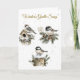 Celebrate the serene beauty of a Victorian winter with this Christmas Splendour card. Featuring three winter birds perched on a snowy pinecone branch, a snowy log, and a snowy birdhouse, adorned with festive green and gold accents, this design captures the charm, tranquillity, and elegance of the season. Perfect for sending warm and heartfelt holiday wishes to family and friends.