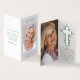 Our small memorial prayer cards measure 2" x 3.5" when folded. This design has space for a photo of your loved one on the front with their name, dates and words of love. Inside you can add another photograph and a short verse or prayer. On the back, you can add words of thanks.