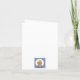 Blank card with loose floral design in a pottery vase. Flowers in orange, blue, purple , red and yellow. Cheerful floral still life greeting card.