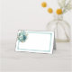This folded name place card is shown in basic white with a lovely teal color floral bouquet with an accent frame in a color of teal.