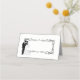 This folded name place card is shown in basic white with a black fancy border box in the centre and a wedding couple art print.
