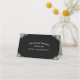 White on black folded table place cards. Part of the Black and White collection. Customise each card with and hosts' names, greeting and date.