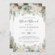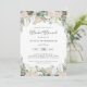 These watercolor floral bridal brunch invitations feature plenty of green leaves with flowers in soft shades of green, cream, sage, and brown on a white background.