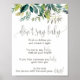 This foliage "Don't Say Baby" sign is the perfect interactive game for a for a rustic baby shower. The design features a boho frame of green leaves and leafy greenery botanicals.