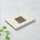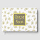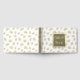 A simple yet eye-catching elegant seamless pattern featuring small watercolor compound ash leaf sprigs in muted almond taupe brown set against a stark white background that has a square clay brown inlay edged with real gold foil. A text template for your custom wording reads "guest book" on the front and your personalised title will appear on the spine. Both text templates are real foil too creating a timeless and luxury look to the cover.
