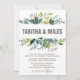 This foliage with monogram wreath backing wedding invitation card is perfect for a rustic wedding. The design features the names of the bride and groom surrounded by a boho frame of green leaves and leafy greenery botanicals. The backing features a matching country wreath which can be personalised with the couples monogram.