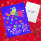 A naif folk art Angel flies over the town with her feathery wings. She is surrounded by bright colorful hearts fluttering in the sky. This design is suitable for anyone from kids to adults.