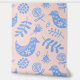 Folk Art Birds Pastel Pink and Blue Wallpaper