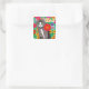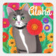 Folk Art Colourful Cat and Flowers Aloha Square Sticker