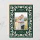 Send stylish, beautiful holiday greetings to your family and friends with this elegant, folk art inspired Christmas photo card. It features a hand drawn floral frame in ivory over a forest green background, as well as a scalloped inner design framing your photo. The back contains more text templates for further personalisation.