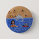 Folk Art Lady Cat Beach Ocean Dolphin Swimming 6 Cm Round Badge