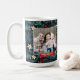 Whimsical folk art mistletoe holly evergreen pattern Christmas photo mug gift. Photo template on both sides you can change to your own family's photos.