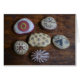 This greeting card features painted river stones which display Native American and folk art symbols and designs.