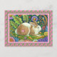 FOLK ART RABBIT, BLUEBIRD, WHIMSICAL SECRET GARDEN POSTCARD